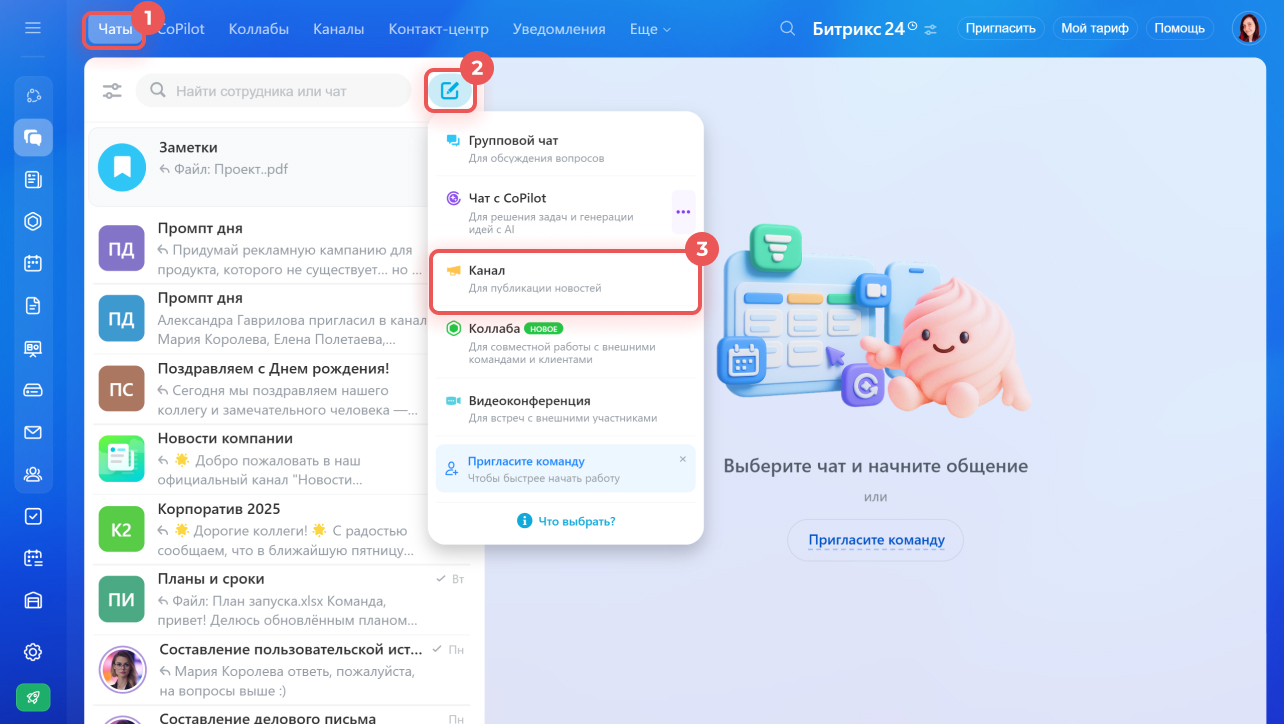 Каналы — это та же привычная подача информации, но внутри рабочего пространства Bitrix24, с автоматическим управлением подписками и понятными правилами, кто за что отвечает.
