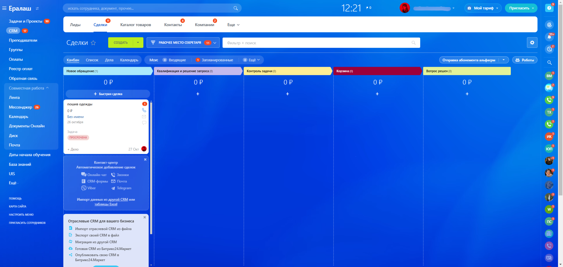 Битрикс24 выступил в роли основного хранилища данных и системы управления клиентами и внутренними процессами. Сюда поступают все обращения, здесь хранятся данные о клиентах, история взаимодействия и оплат. AlfaCRM же в свою очередь отвечает за организацию учебного процесса: управление расписанием и контроль посещаемости театральной студии.
