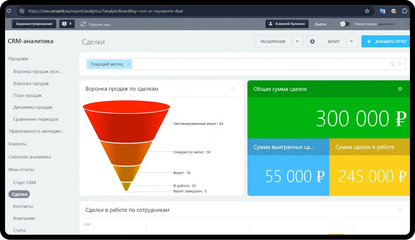 Актуальную аналитику по продажам менеджеры и руководители могут получить в любое время.