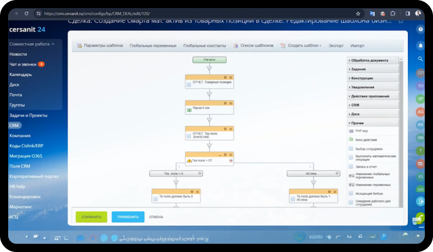• Настроили необходимые сущности, роботы и смарт-процессы.